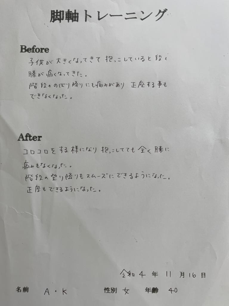 膝の痛みがなくなり、正座ができるようになりました!